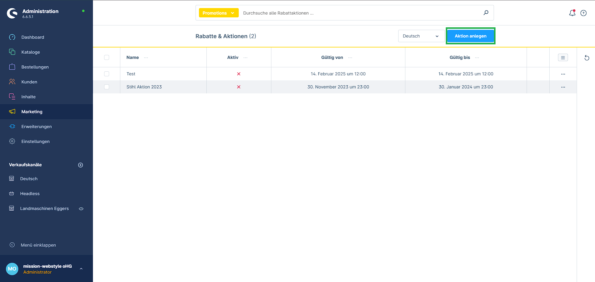 2. Klick auf Aktion anlegen