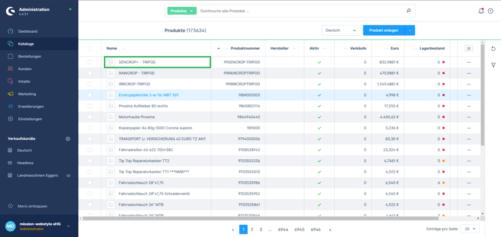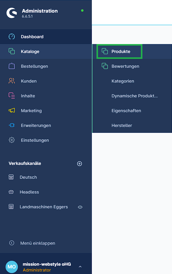 1. Navigiere zu Kataloge -> Produkte