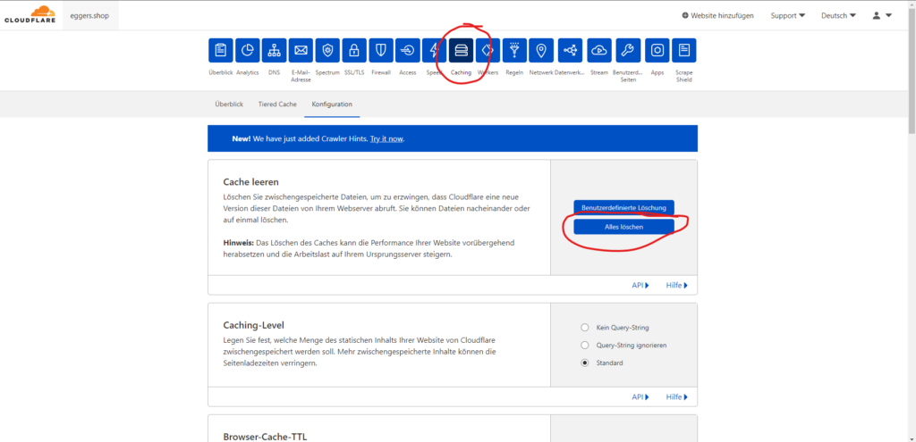 3. Cache im Cloudflare leeren