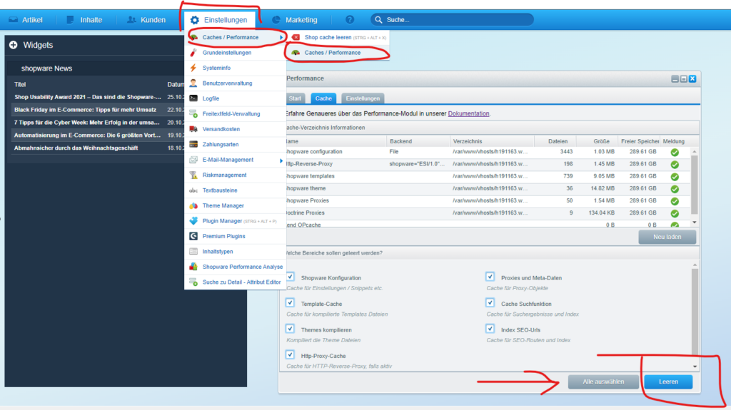2. Shopware 5 Cache leeren