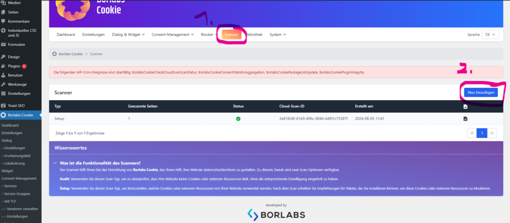 Die Integration von Google reCaptcha in Contact Form7 muss über die Hauseigene Borlabs Extension erfolgen. Dafür einfach den Scanner nutzen.