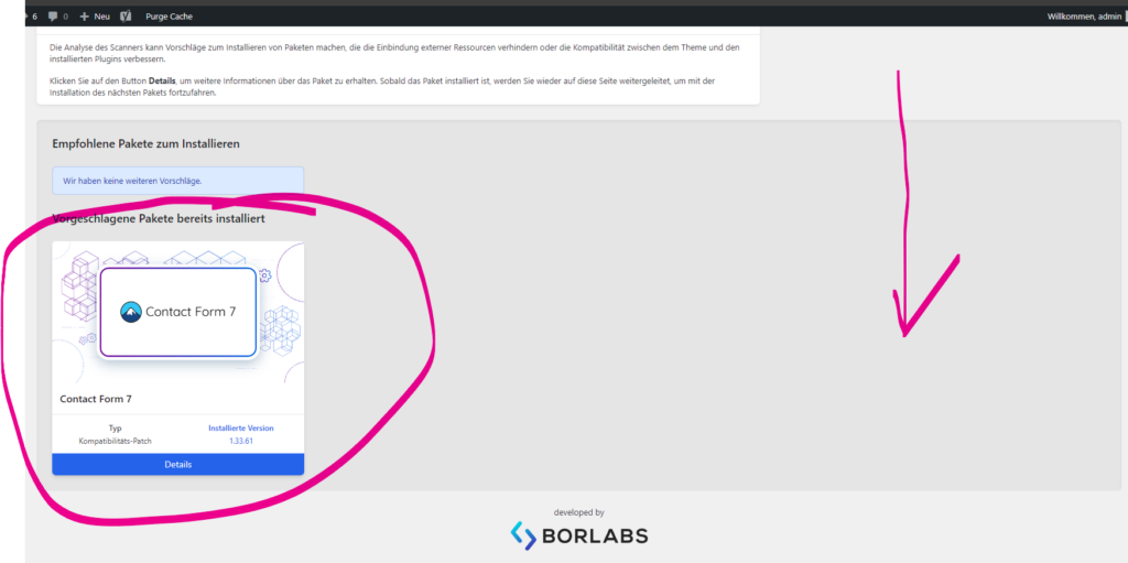 Anschließend auf Contact Form 7 klicken (details ansehen)