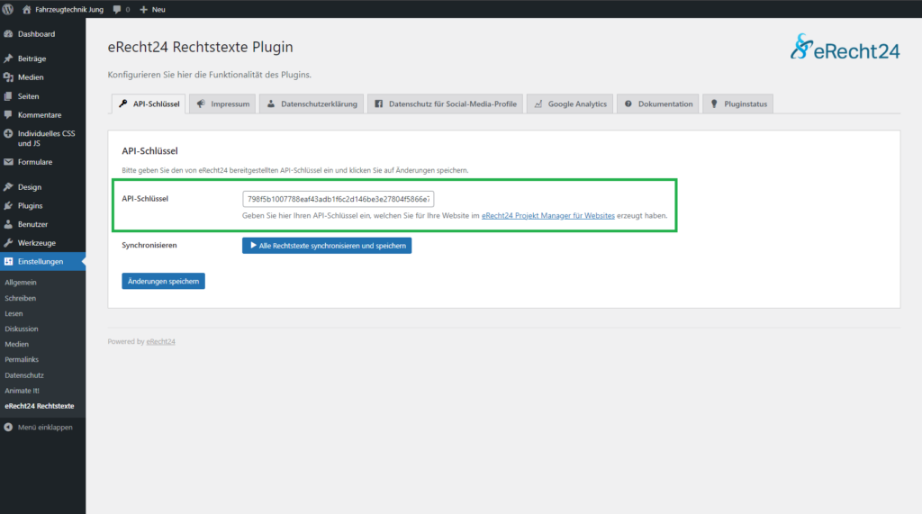 3. Plugin in WordPress installieren und API-Key eintragen.