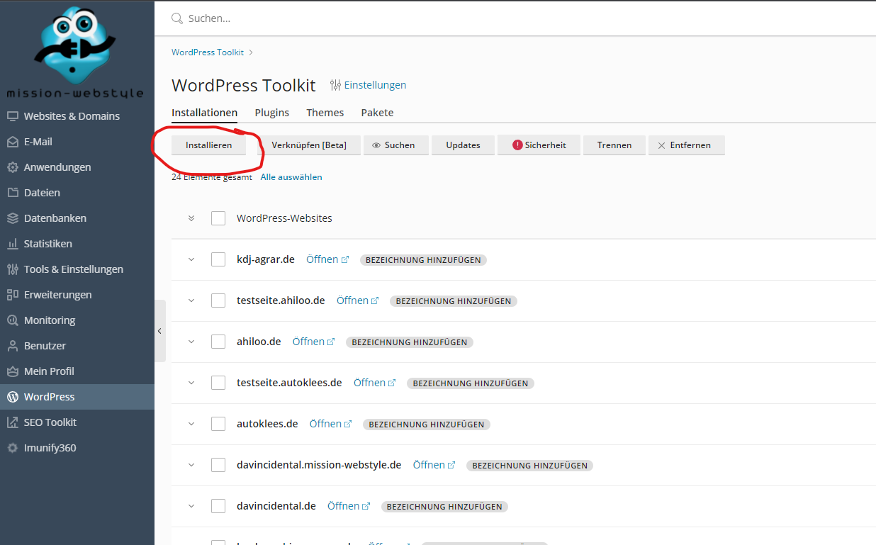 In Plesk kann es passieren das eine WordPress Installation nicht gefunden wird. In diesem Fall muss man wie folgt vorgehen damit diese ins System eingespeist wird: