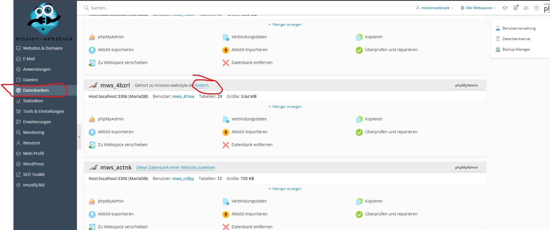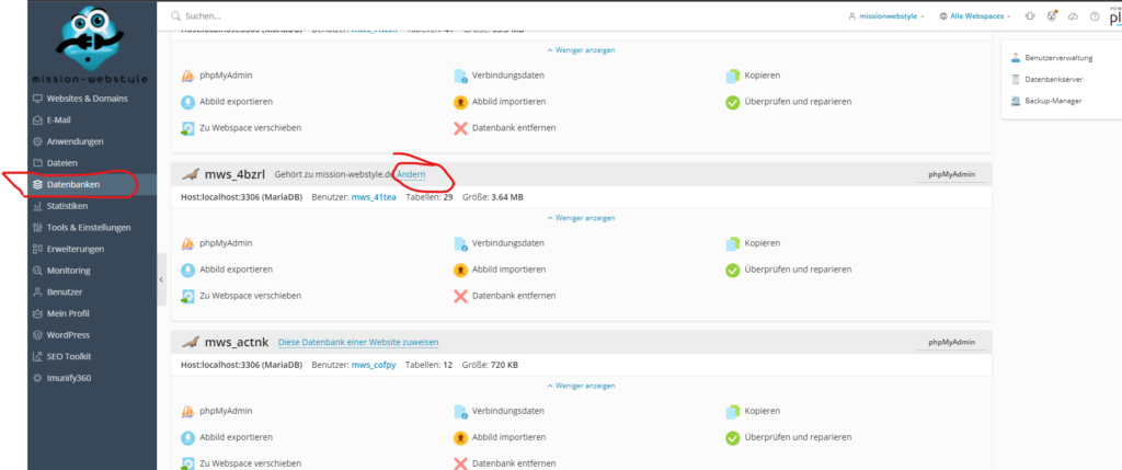 Datenbank der neuen Domain zuweisen nicht vergessen!