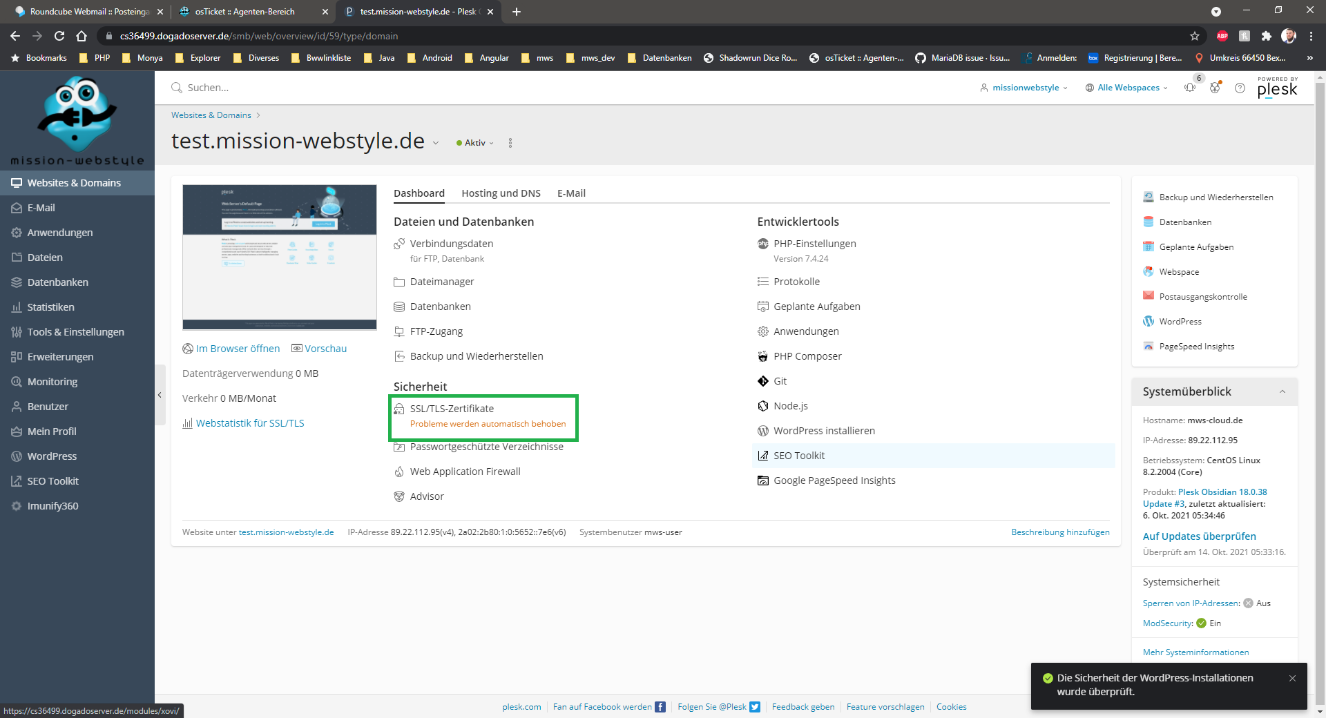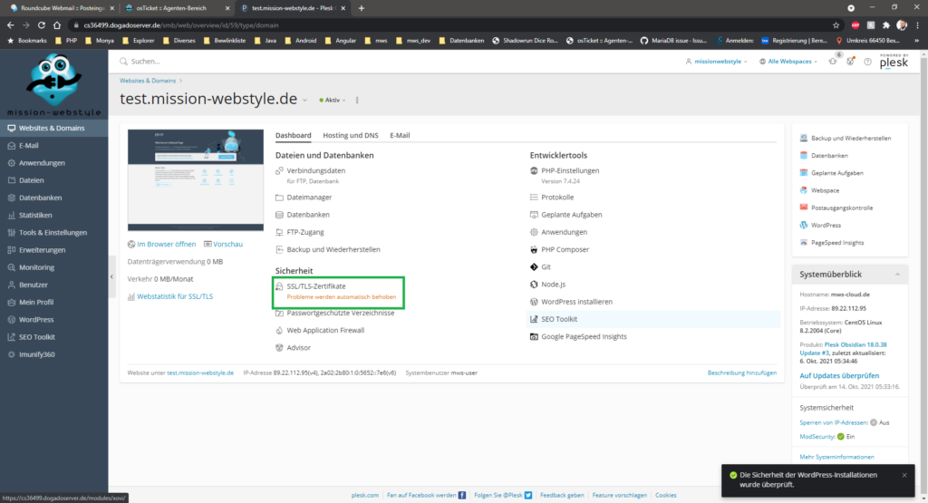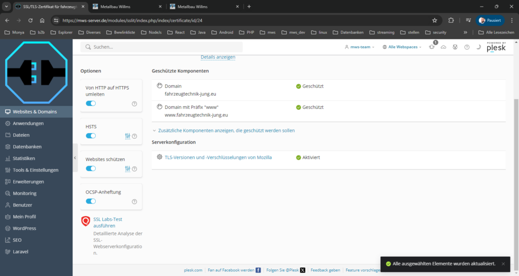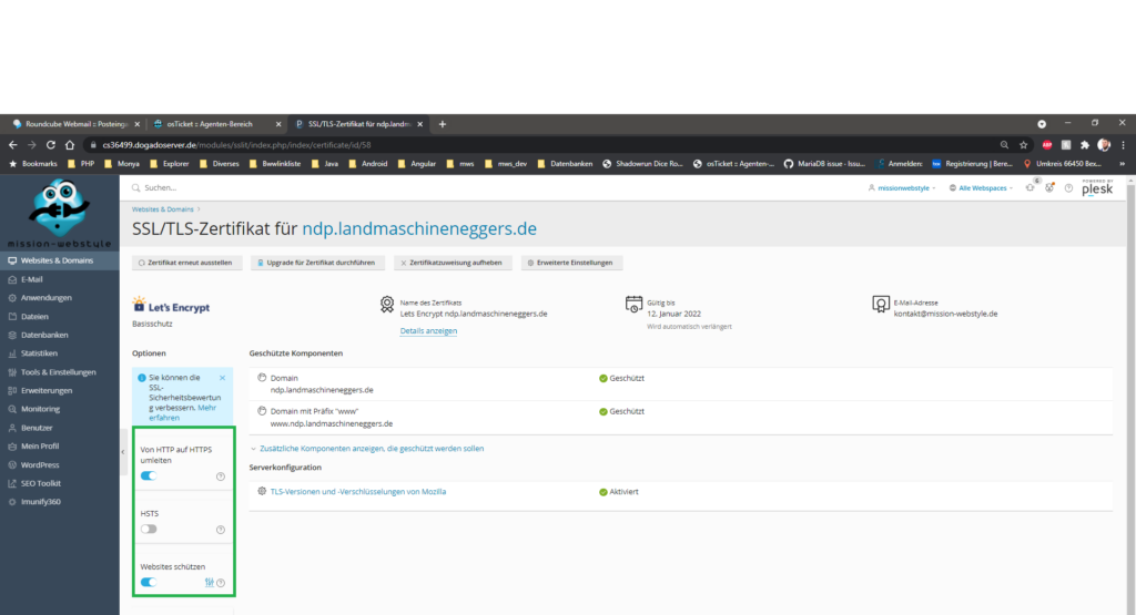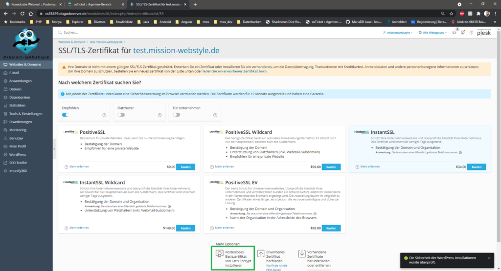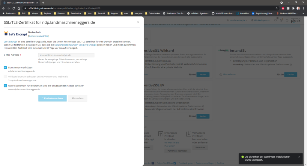 Die Screenshots im Anhang zeigen ihrer Nummerierung folgend, wie ein kostenloses, sich selbst erneuerndes Let’s Encrypt – Zertifikat erstellt und zugewiesen wird.
