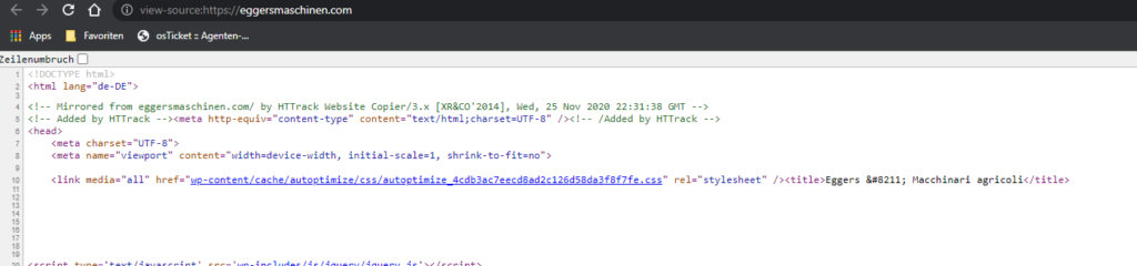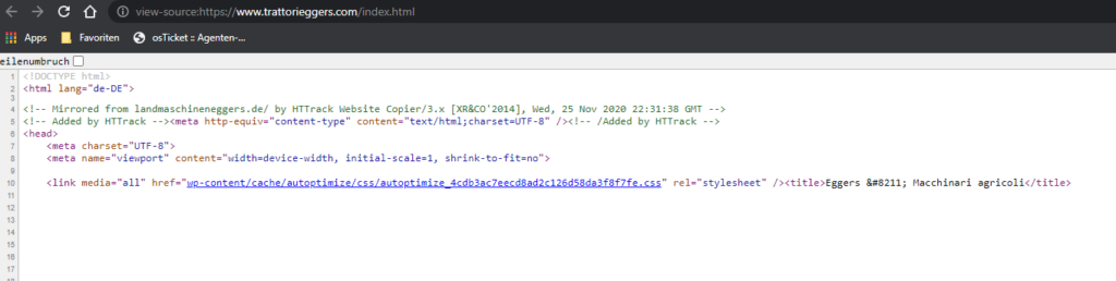 Die Webseite https://eggersmaschinen.com/ als auch https://www.trattorieggers.com/index.html wurde durch das Tool „HTTrack Website Copier/3.x“ kopiert und unautorisiert unter den oben genannten Domains hochgeladen. Die Originalwebseite ist https://landmaschineneggers.de und wurde mit WordPress erstellt. Um dem Missbrauch vorzubeugen wurde ein Schutz vor Hotlinking eingerichtet weshalb die Bilder auf der Webseite https://www.trattorieggers.com/index.html nicht mehr zu sehen sind. Die Webseite https://eggersmaschinen.com hat aktiv alle Bilder unserer Webseite heruntergeladen und damit einen klaren Urheberrechtsverstoß begangen – neben der Kopie der Webseite. Über die beiden Fake-Webseiten wird unseres Wissens nach Betrug am Endkunden begangen.